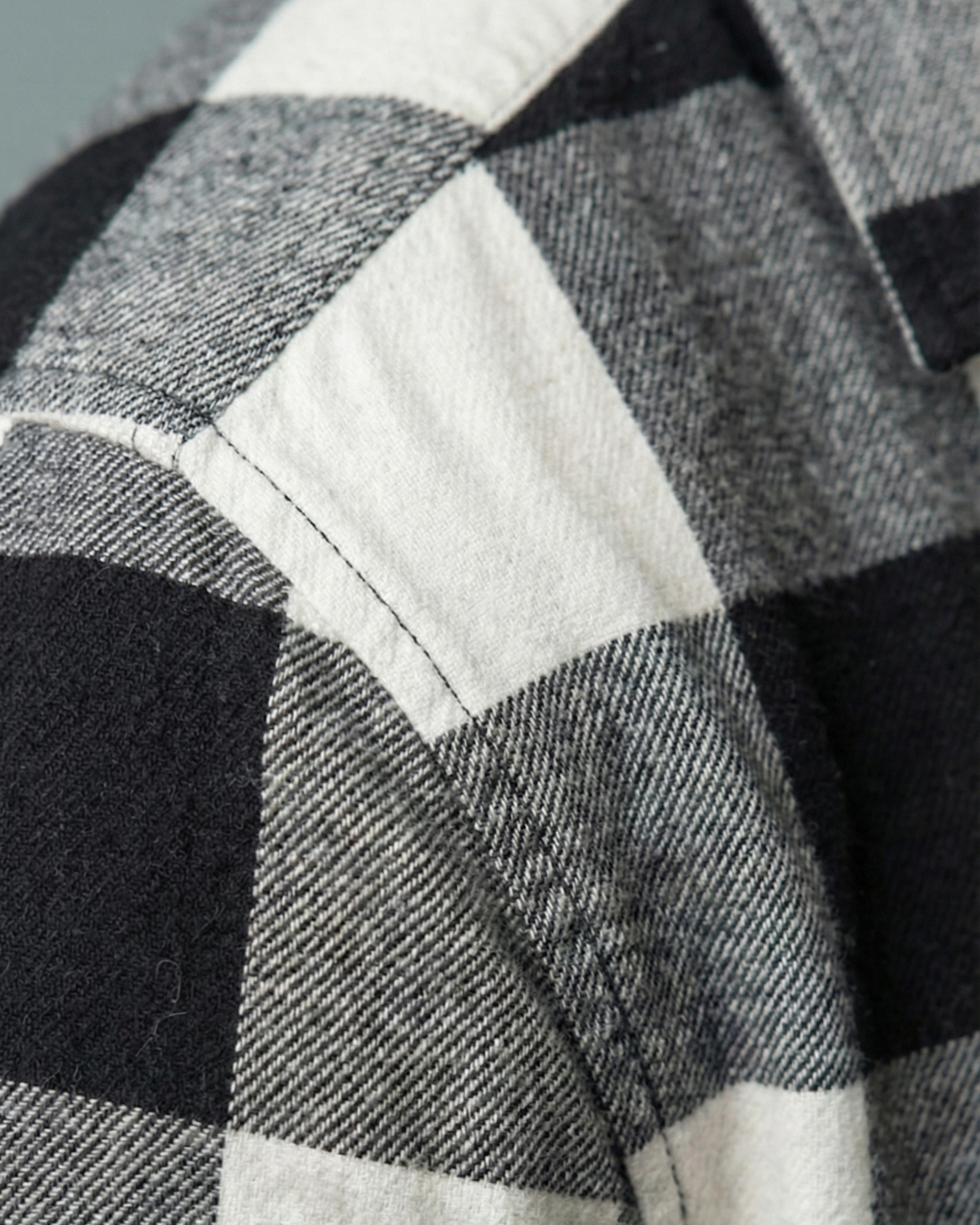 The classic black and white check pattern delivers a clean, masculine look that never goes out of style. Perfect for casual wear, travel, and cool-weather outings, this shirt balances comfort and structure, making it a dependable wardrobe essential.