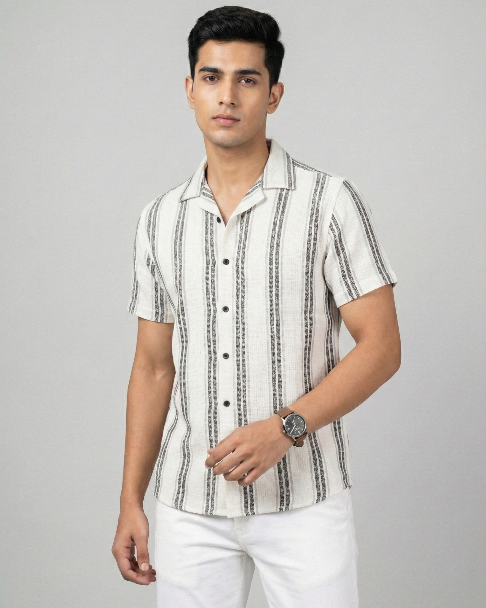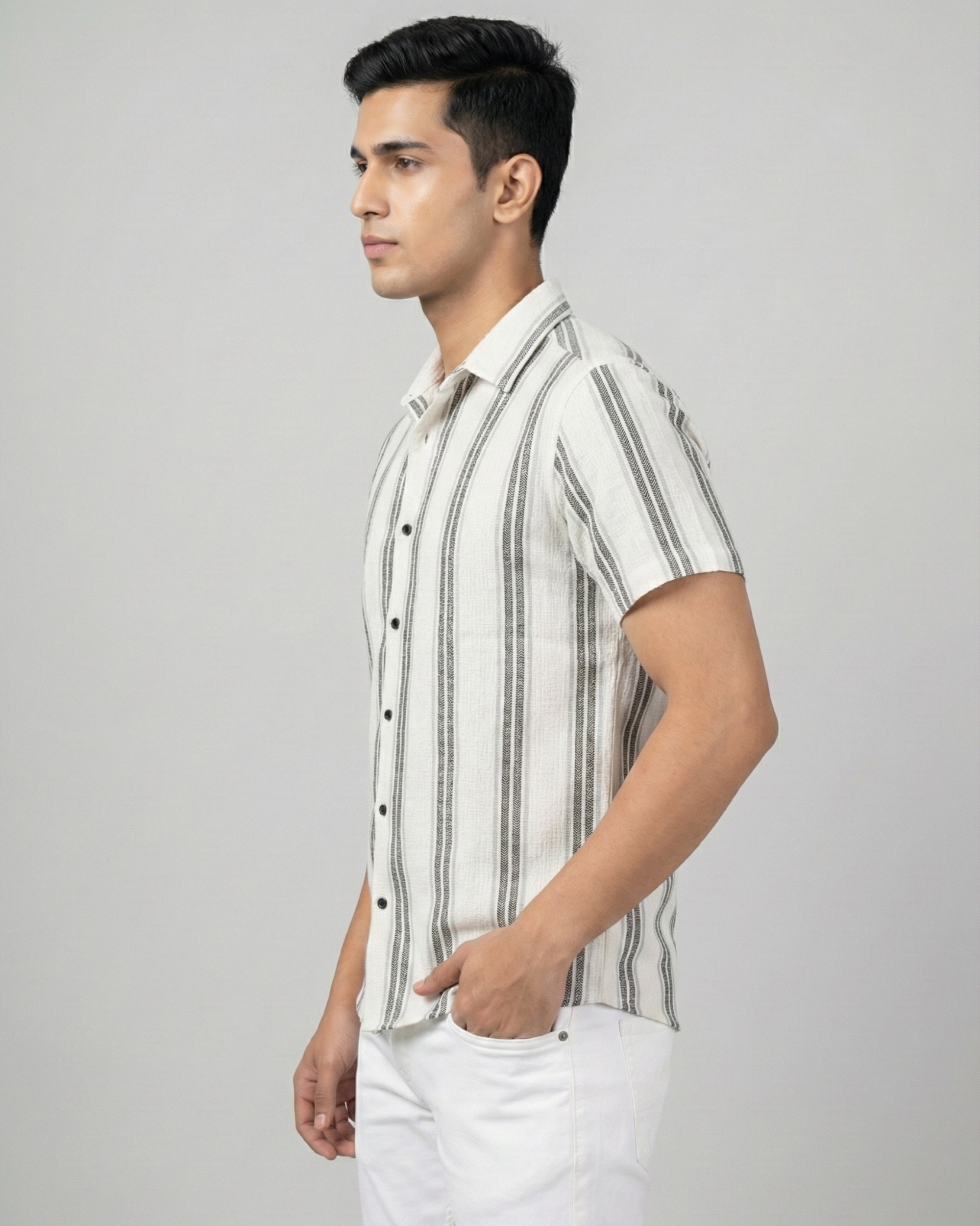 Clean, relaxed, and effortlessly stylish — the Mystery View Striped Casual Shirt is designed for men who prefer understated elegance in everyday wear. Crafted using premium textured cotton fabric, this shirt delivers a breathable feel with a natural surface texture that adds character and depth.